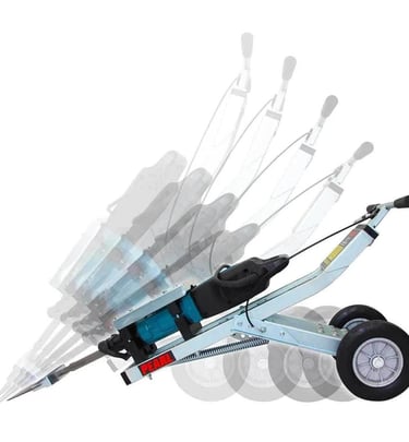 Equipado con un diseño ergonómico y un sistema de absorción de impactos, el Easy Hammer Trolley reduce significativamente la fatiga del operador, el esfuerzo en la espalda y el riesgo de lesiones, haciendo las tareas de demolición más seguras y cómodas. Su capacidad para ajustar el ángulo del martillo entre 20 y 80 grados añade versatilidad, asegurando siempre el ángulo perfecto para una demolición eficiente.